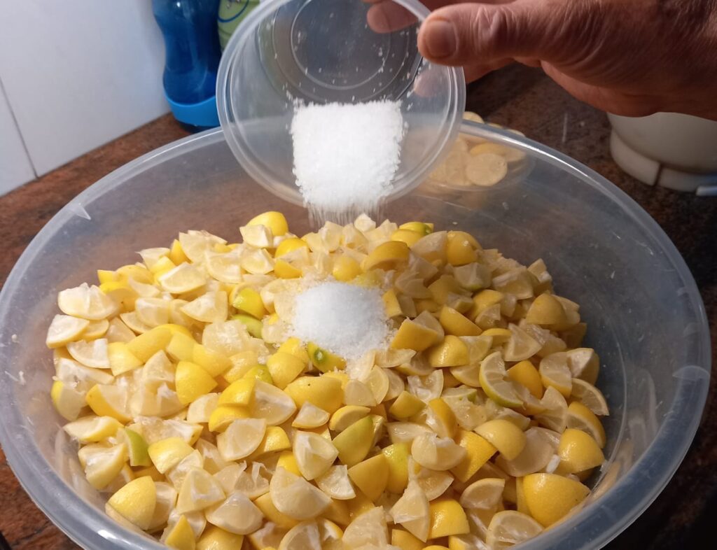 7. לזרות (לפזר) את המלח על הלימונים בקערה.