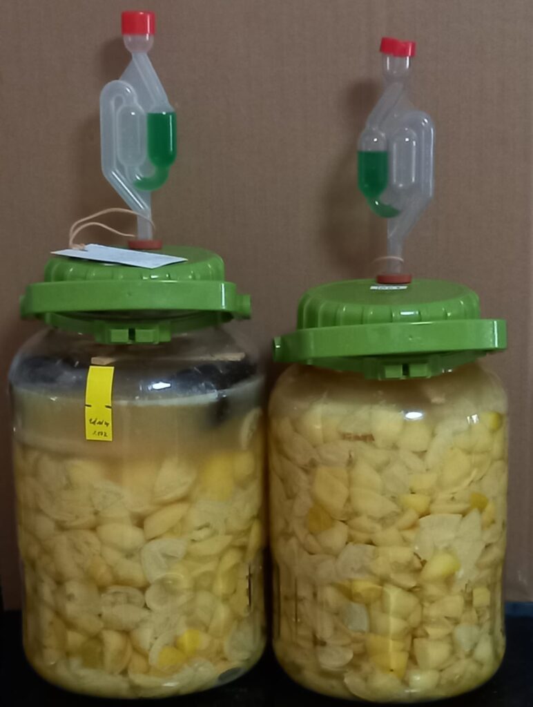על מנת להגיע לאיכויות כאלה, אנחנו מתבקשים לעשות שימוש בכל חלקי הלימון הייחודי הזה (המוצקים, הנוזלים , הגרעינים והשמנים האתריים), תוך השארת נפח פנוי שיאפשר הכנסת המשקלות ויצירת נפח חופשי המונע מהנוזלים היקרים לברוח מתוך מיכל ההתססה.