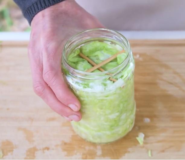 בירקות חתוכים דק, כגון כרוב כבוש, רצוי לשים שכבת הפרדה, שמטרתה למנוע מחתיכות הכרוב הקטנות לצוף. לרוב אנחנו משתמשים בעלים של כרוב, ועליהן שמים משקולות, אך מה קורה כשאין משקולות בהישג יד?